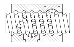 此種型式是由鋼珠滾動于螺桿與螺帽之間的溝槽而前進,再被外循環管前端撈起,通過循環管路徑迴流至循環管另一端,而回到原點的循環方式。 一般為多捲鋼珠一次循環管,外型可採用「圓周型」及「管突出型」。