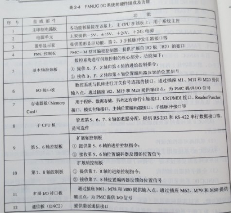 FANUC OC系統(tǒng)的數(shù)控單元為大板結(jié)構(gòu)?;九渲冒?主印制電路板(PCB)、存儲(chǔ)器板、圖形顯示板、可編程機(jī)床控制器板(PMC-M )、伺服軸控制板、UO接口板、子CPU板、擴(kuò)展軸板、數(shù)控單元和DNC控制板。各板插在主印制電路板上,與CPU的總線相連。圖2-14為FANUC OC系統(tǒng)數(shù)控單元結(jié)構(gòu)圖,圖2-15為FANUC OTC系統(tǒng)構(gòu)成框圖。表2-4為FANUC OC系統(tǒng)的硬件構(gòu)成及功能。